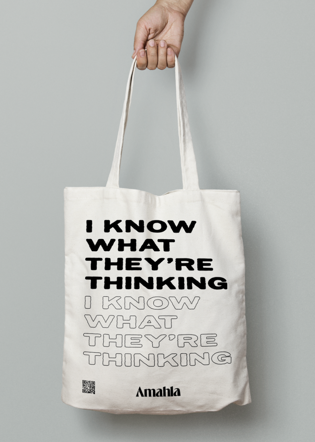 Introducing the First Edition Amahla Tote Bag, celebrating her powerful single: "I Know What They're Thinking." This premium black cotton tote features bold white lettering and is designed to combine functionality with timeless style.