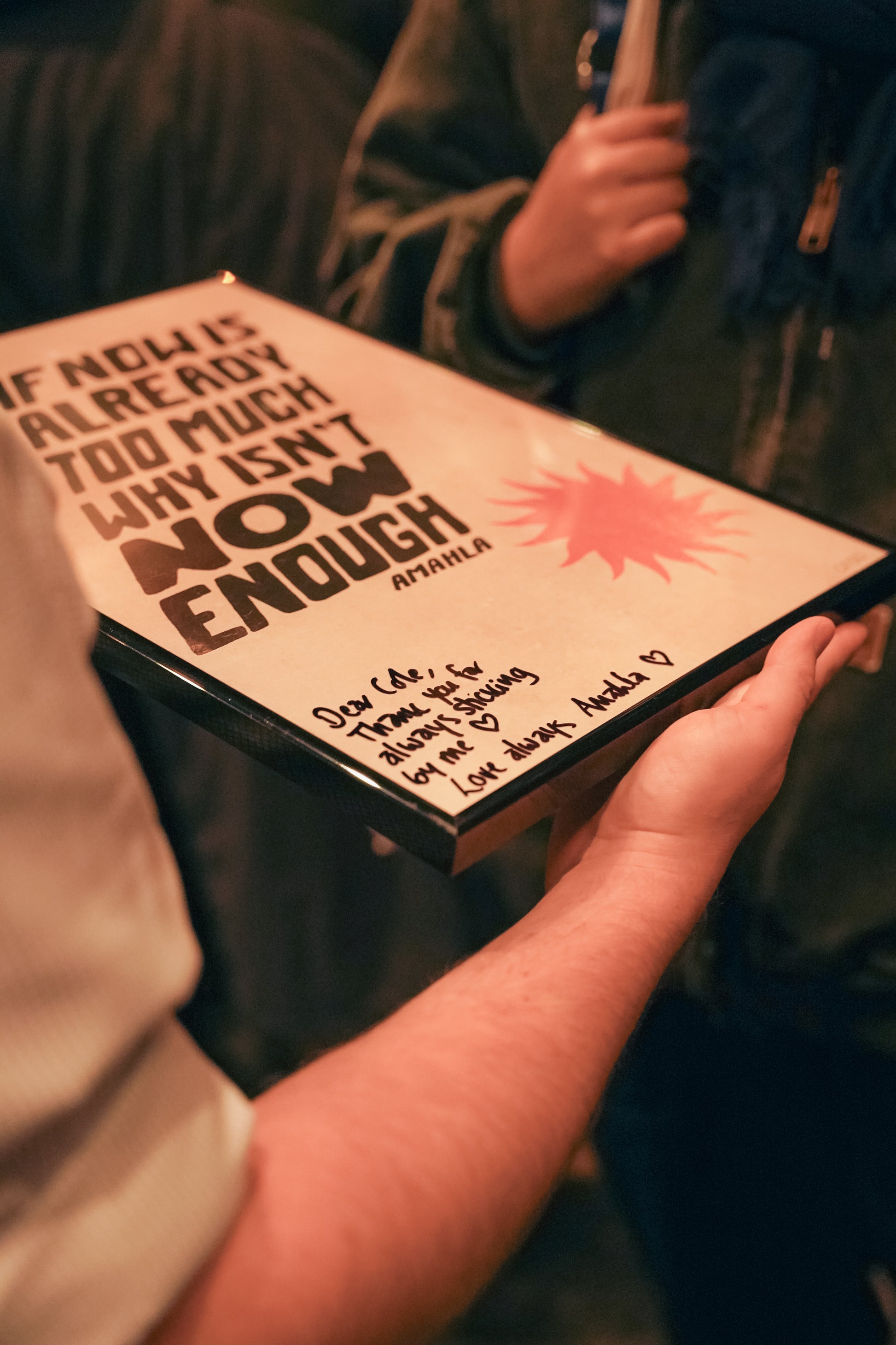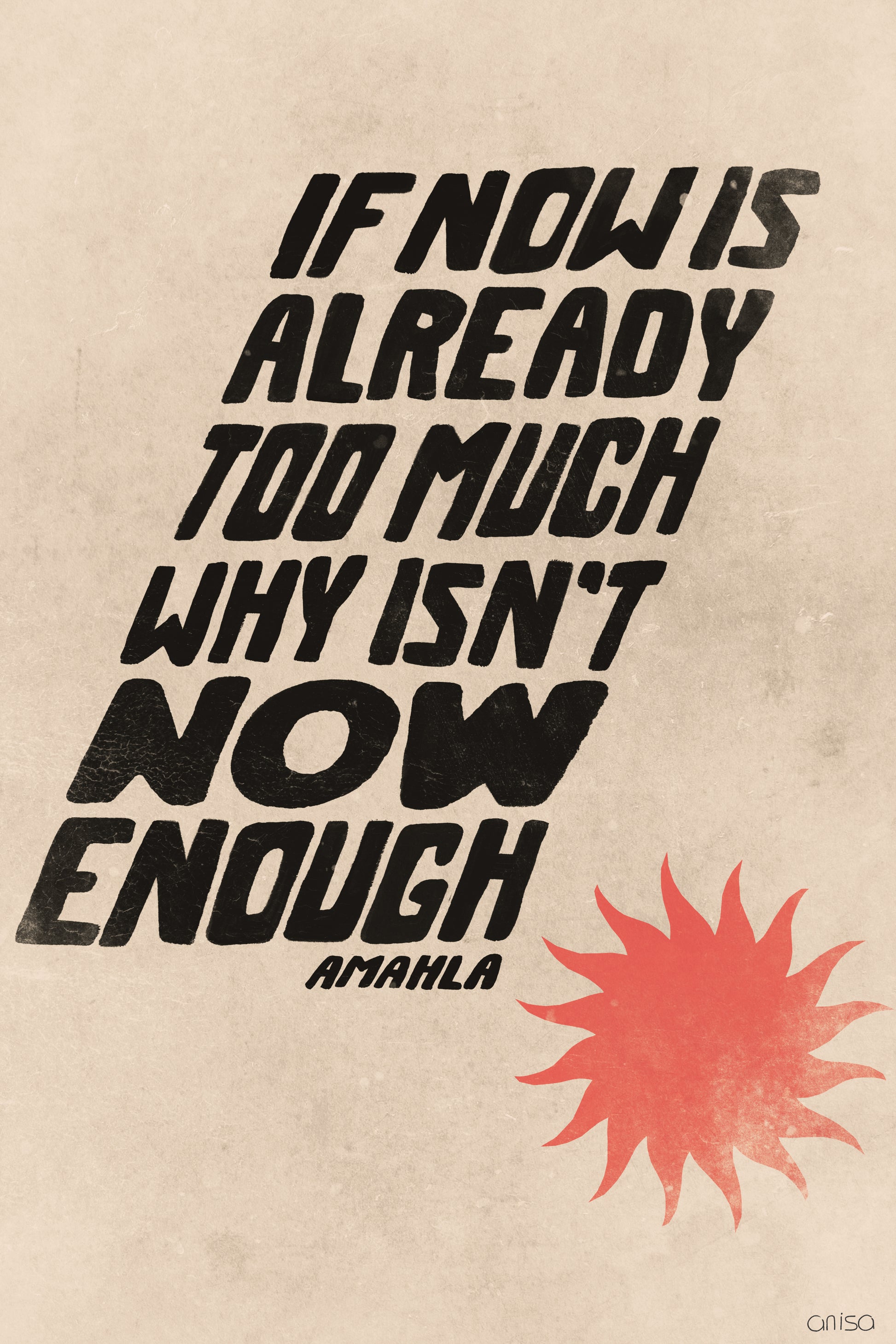 This limited edition framed print features the iconic phrase from Amahla’s protest anthem "Enough": "If Now Isn’t Too Much, Why Isn’t Now Enough?"