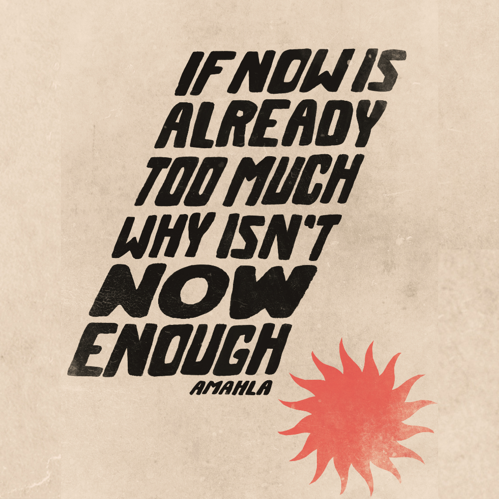 Inspired by Amahla’s powerful protest song "Enough," this limited edition poster print features the striking phrase: "If Now Isn’t Too Much, Why Isn’t Now Enough?"