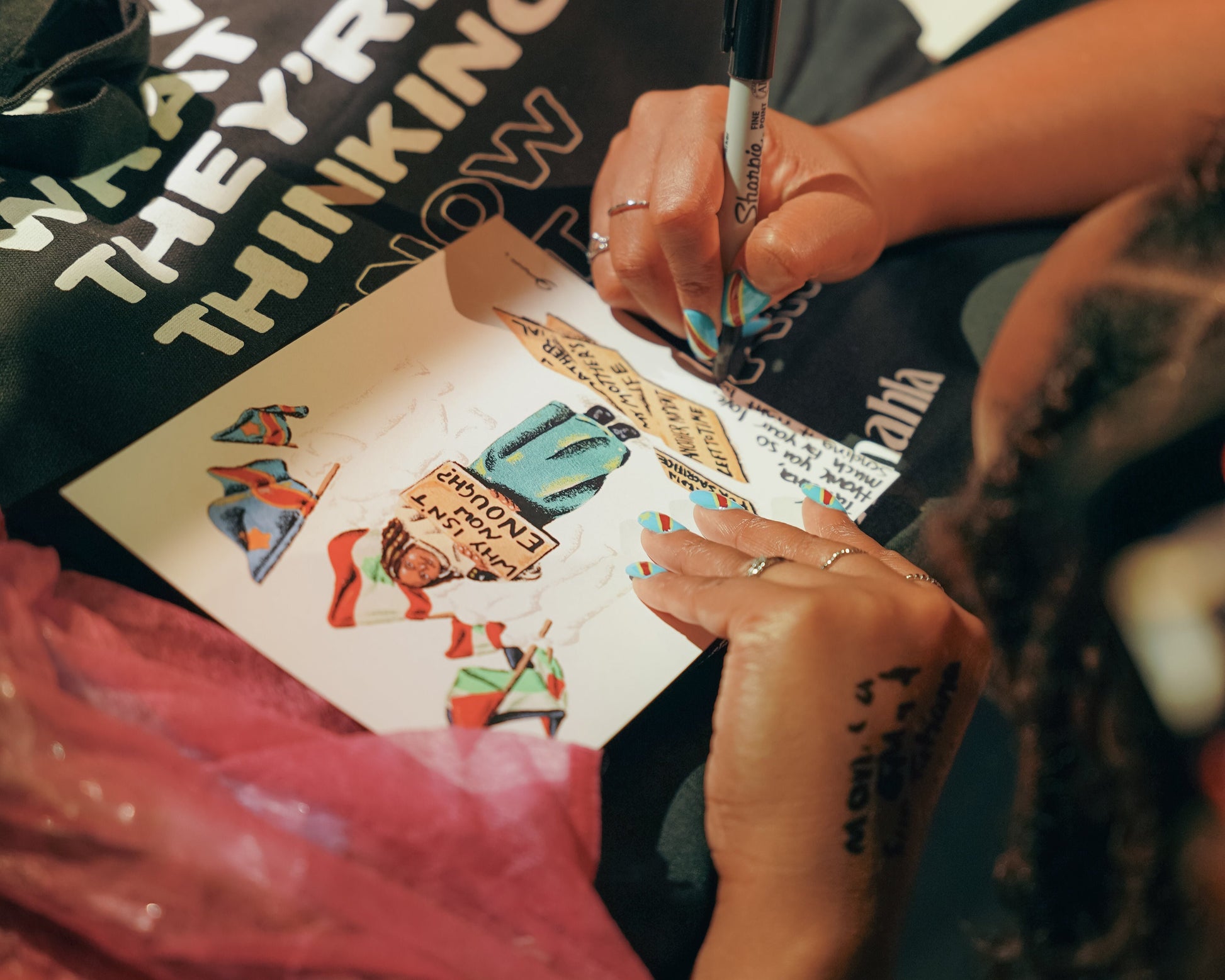 Transform your space with this striking full-color illustration of Amahla, holding a protest sign bearing the powerful words: "Why Isn't Now Enough?" Featuring the flags of Lebanon, the Democratic Republic of Congo, and Palestine, this artwork stands as a symbol of unity and resilience in the face of injustice.